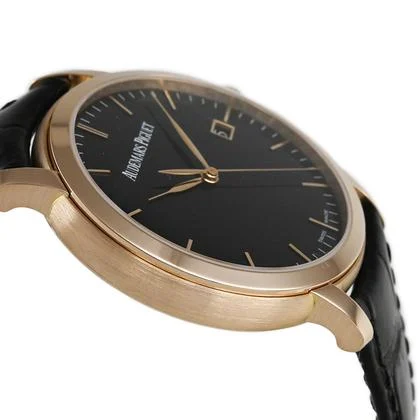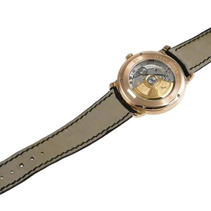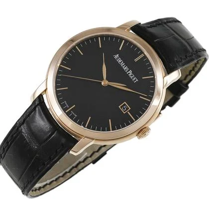 Drive Automatic winding Material: PG Dial: Black Case diameter/thickness 39mm /9mm Crystal Sapphire crystal Water Resistance: 20m Water Resistance Lug Width: 20mm Genuine leather strap, buckle (pg) Wrist Circumference Accessories: Box, warranty card (domestic authentic, July 2012), booklet Comment: Founded in 1875, Audemars Piguet is one of the world’s three major luxury watch brands. This collection bears the name of one of its founders, Jules Audemars. A refined model featuring a simple round case in 18K pink gold and a beautiful black dial. It has a see-through case back. There are some minor, light scratches, but no noticeable deep scratches. There is a scratch on the glass edge (at the 5 o’clock position). Purchased from an authorized domestic retailer. |